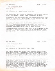 Cataloging of "Agape Therapy" and Pope Memorial Grant Materials Memo