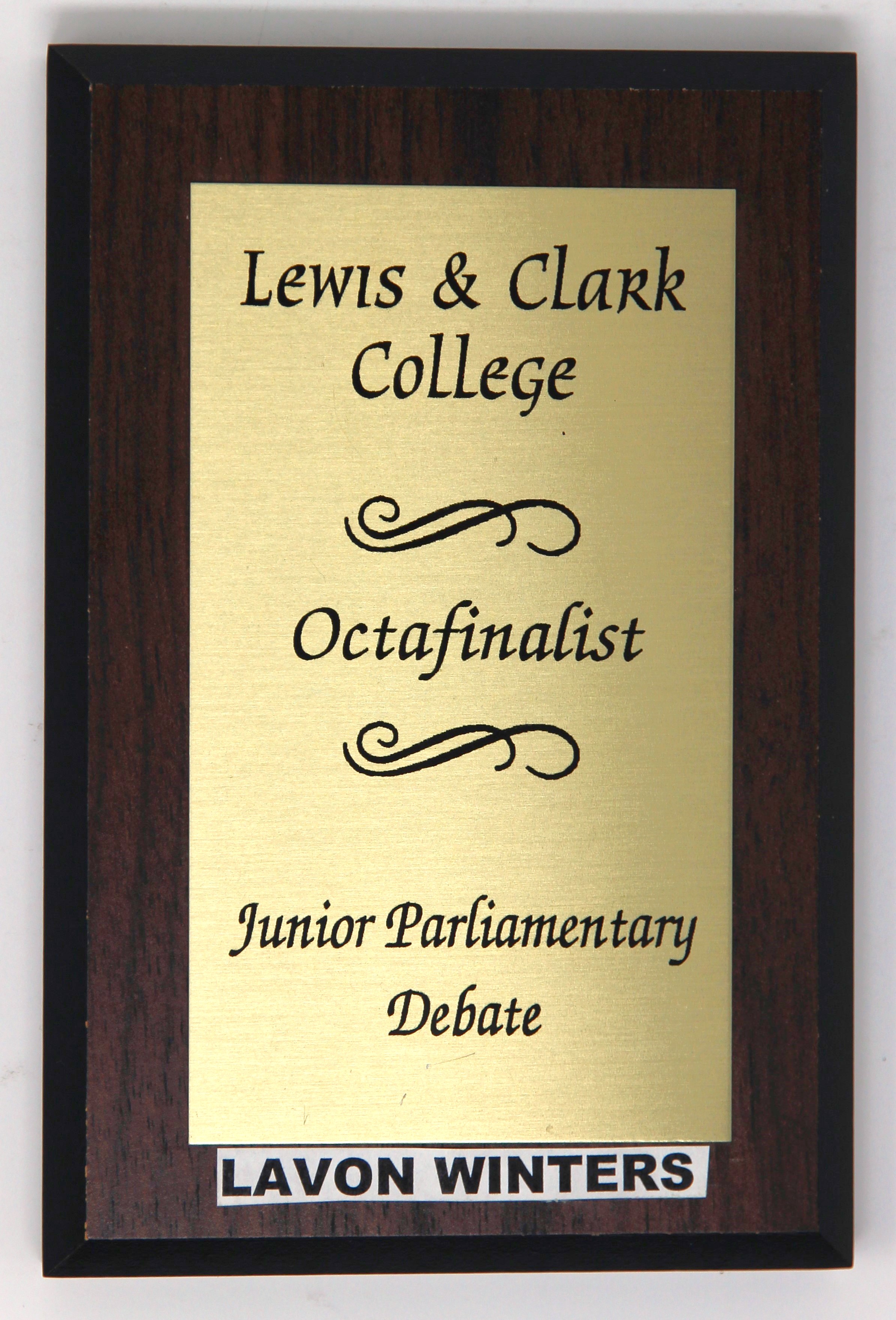 Octafinalist award presented to Lavon Winters in the 1999 Junior Parliamentary Debate hosted at Lewis and Clark College.