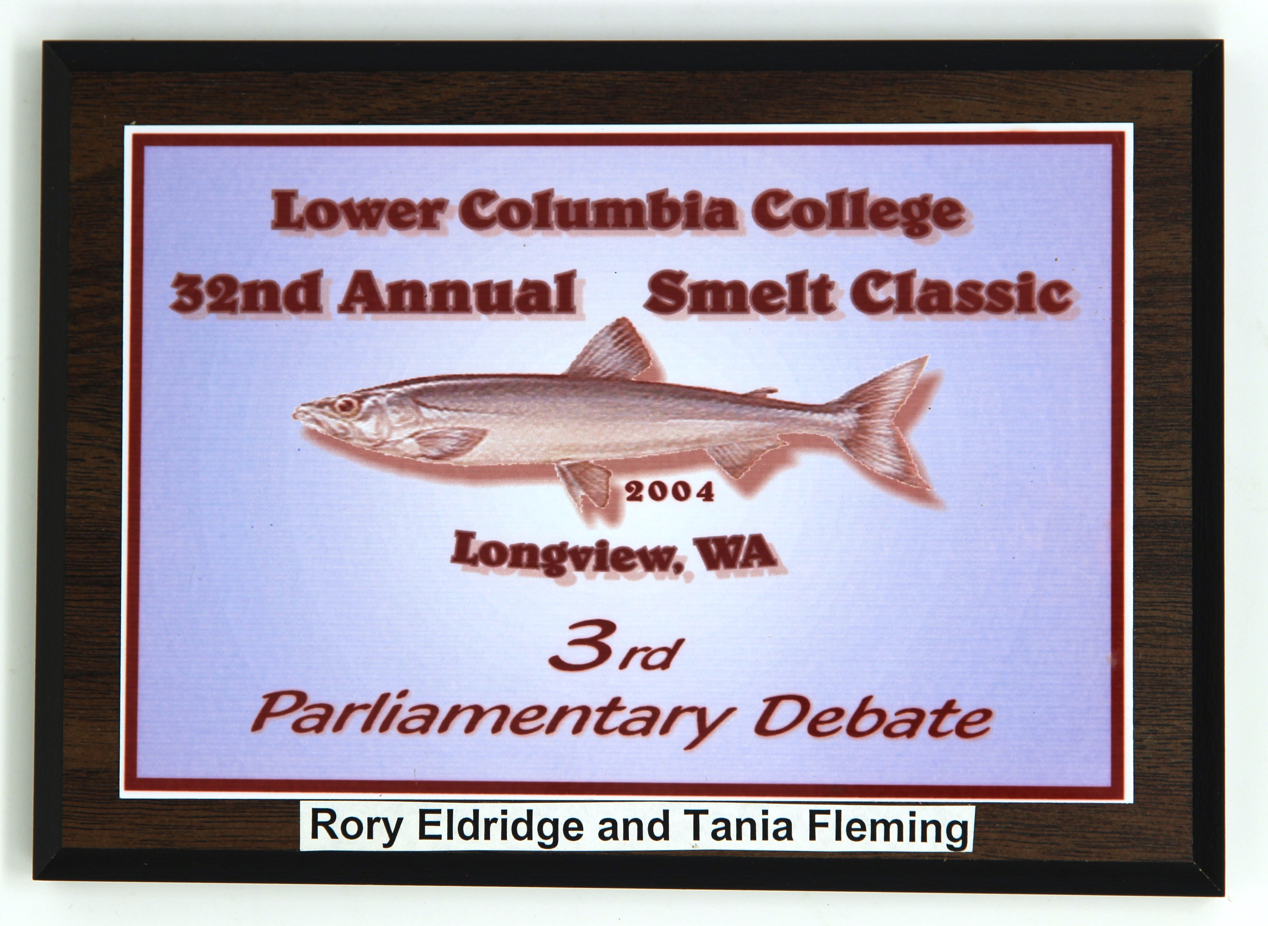 Third place award in parliamentary debate from the 32nd Annual Smelt Classic hosted at Lower Columbia College.