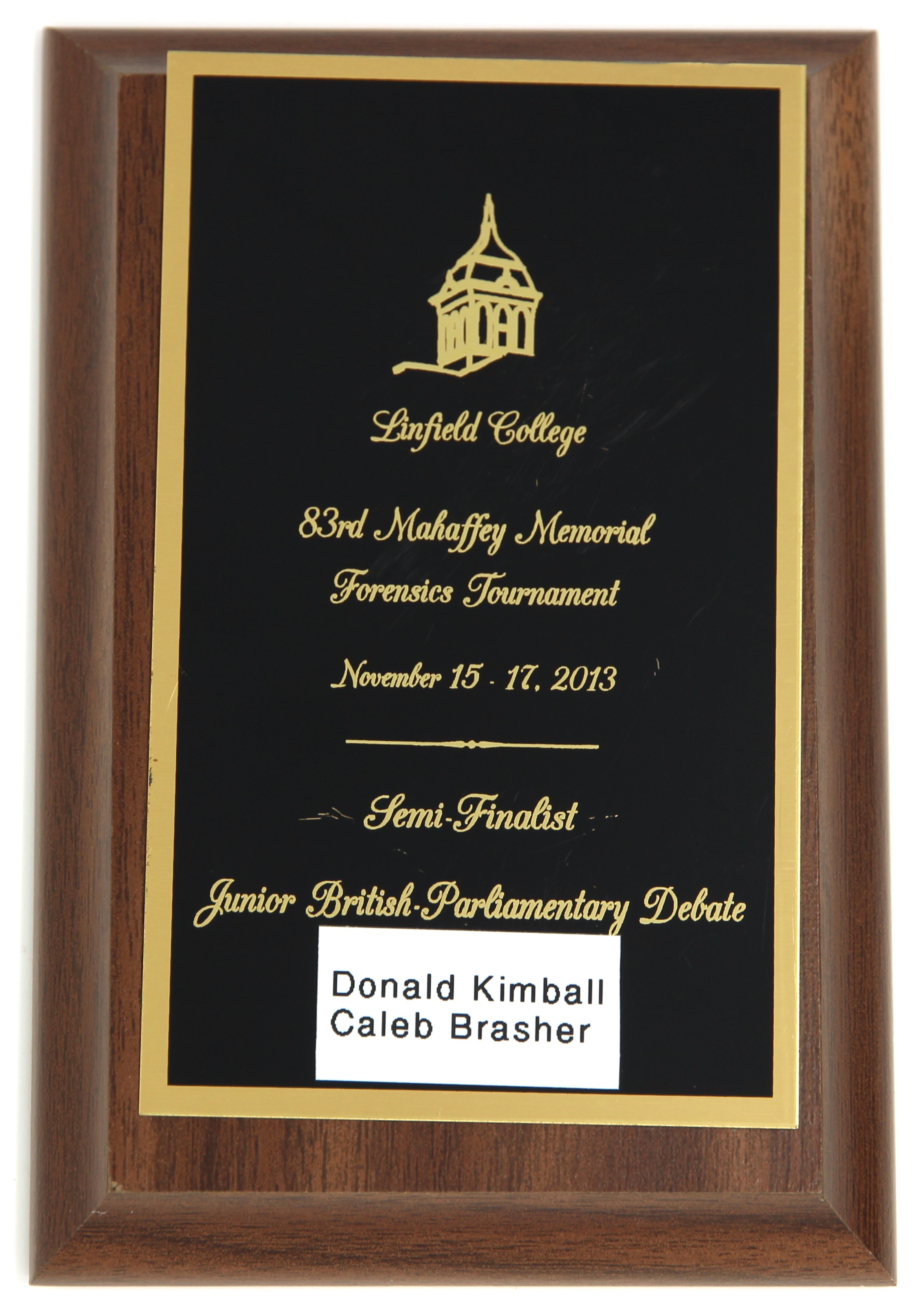 Semi-finalist award in British Parliamentary debate, junior division, from the 83rd Mahaffey Memorial Forensics Tournament hosted at Linfield College.