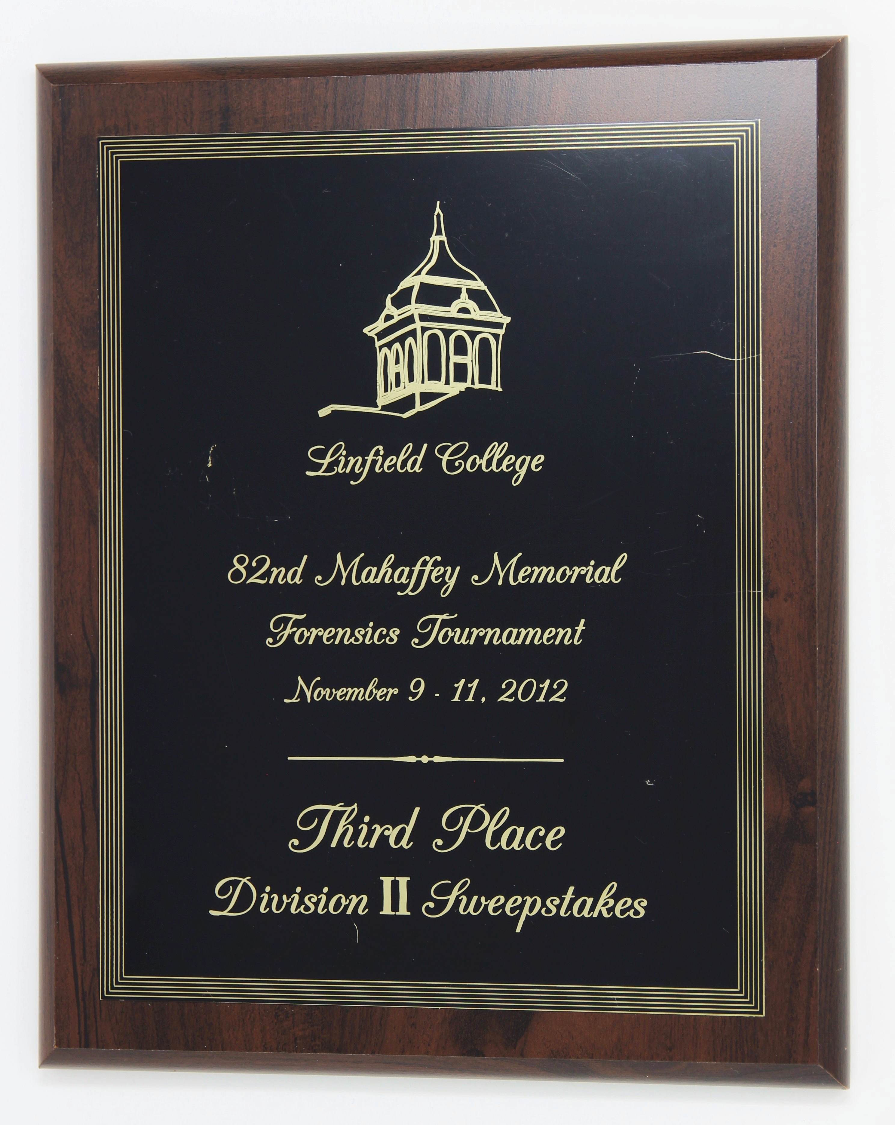 Third place award in sweepstakes, second division, from the 82nd Mahaffey Memorial Forensics Tournament hosted at Linfield College.